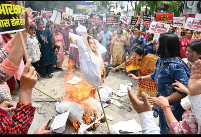 *मातृशक्ति ने कांग्रेस एवं उनके सहयोगी दलों का पुतला दहन कर जताया आक्रोश*